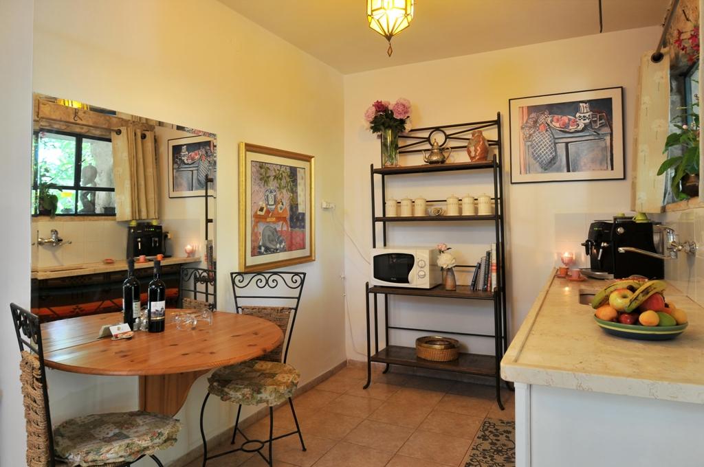 • Kitchenette équipée : réfrigérateur, four à micro-ondes, bouilloire électrique, couverts, services pour boissons chaudes, lait, bouteille de vin, chocolats de qualité, et, en week-end : coupe de fruits de saison